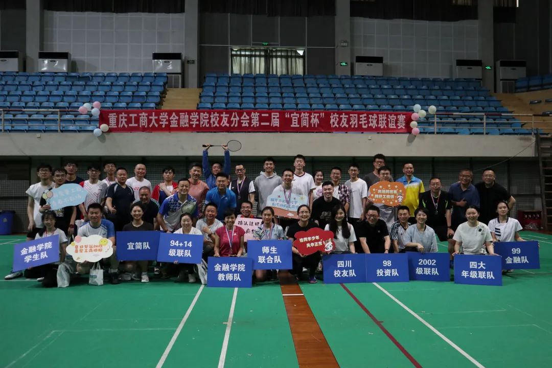 同一时间的体艺馆内,第二届“宜简杯”校友羽毛球联谊赛精彩纷呈。本次比赛有校友及bat365中文官方网站师生组建的10支队伍参赛。比赛现场气氛热烈,各队选手配合默契,展现出金融人奋发争先、团结拼搏的精神面貌。