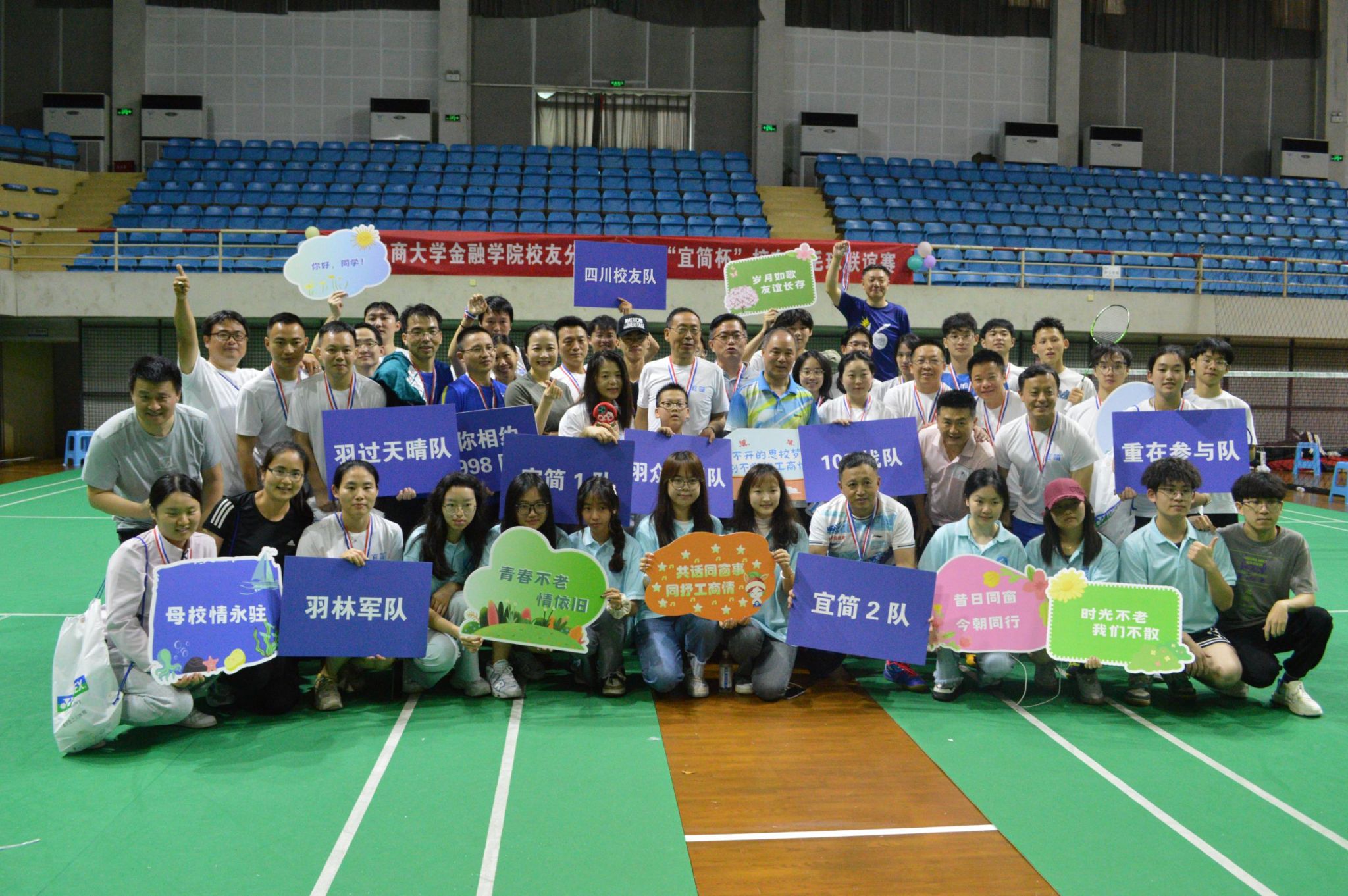 同时,在体艺馆举行bat365中文官方网站校友分会第三届“宜简杯”校友羽毛球联谊赛。校友羽毛球联赛共9支队伍参加比赛。比赛分为两个阶段,第一阶段小组为循环赛,各小组内部进行循环赛,每局55分制,一局定胜负;第二阶段为排位赛,A、B两组通过重新分组,分别开展循环赛和排位赛。参赛者为观众们献上了一场又一场智力和体力较量、力量与技术共存的精彩比赛,最终四川校友队以55:45的成绩取胜,并以小组积分第一的成绩获得排位赛冠军。