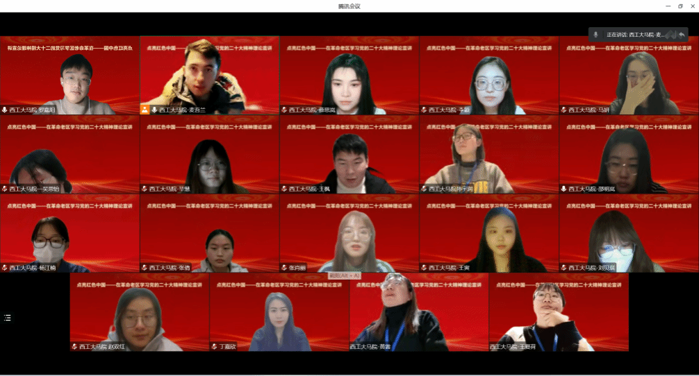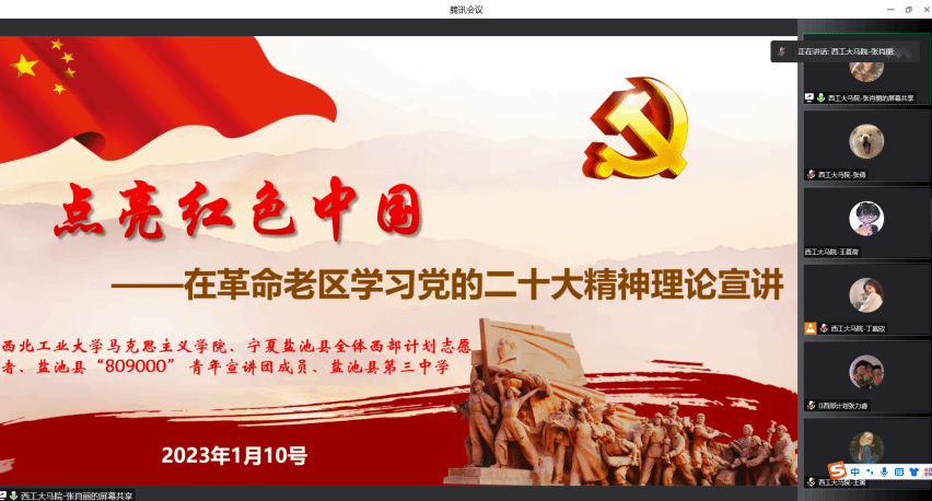 学习好、宣传好、贯彻好、落实好党的二十大精神,是当前和今后一个时期全党全国的首要政治任务。为引导广大青年深入学习和深刻领会党的二十大精神,增强守初心、担使命的思想自觉和行动自觉,2023年1月10日,由必赢242net官网王换老师指导的20余名硕士研究生组成的“点亮红色中国”党的二十大精神进基层·青春逐梦行实践队,面向宁夏革命老区团员青年开展党的二十大精神宣讲。本次宣讲由张肖丽同学主持,受众包括来自宁夏盐池县西部计划志愿者、盐池县“809000”青年宣讲团成员、盐池县第三中学学生等近500名同学。