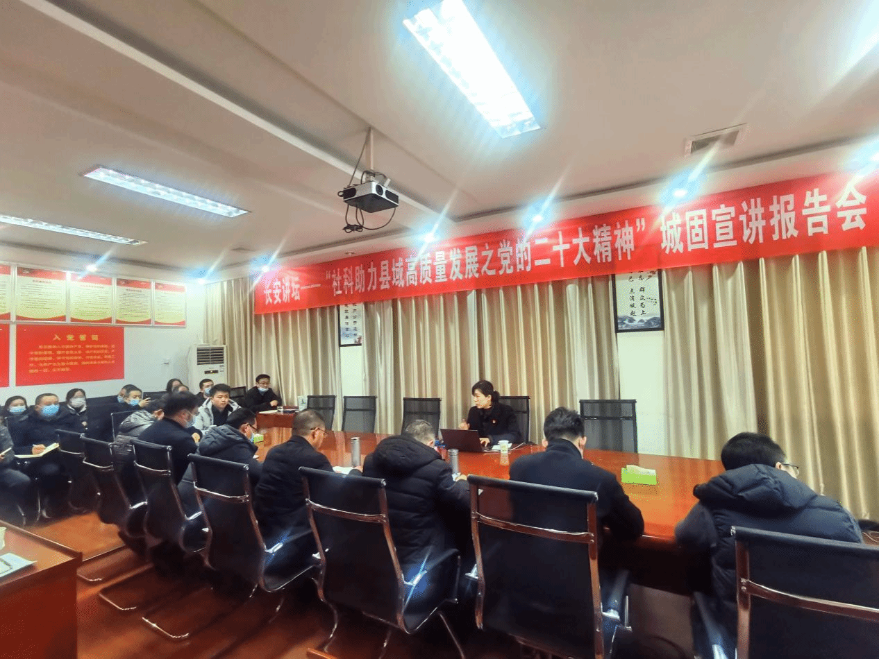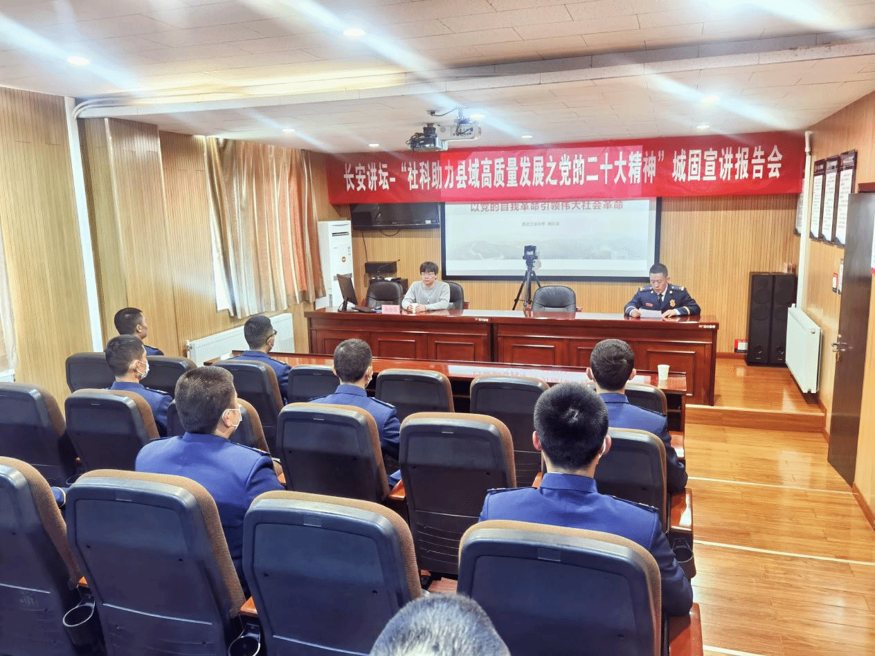党的二十大是在我国迈上全面建设社会主义现代化国家新征程、向第二个百年奋斗目标进军的关键时刻召开的一次十分重要的大会,举国关注、世界瞩目。党的二十大担负起全党的重托和人民的期待,从战略全局深刻阐述了新时代坚持和发展中国特色社会主义的一系列重大理论和实践问题,科学谋划了未来一个时期党和国家事业发展的目标任务和大政方针,在党和国家历史上具有重大而深远的意义。学习宣传贯彻好党的二十大精神,是当前和今后一个时期全党全国的重要政治任务,也是社科工作者必须肩负起的重大历史责任。2023年2月9日至10日,“社科助力县域高质量发展”必赢242net官网“党的二十大精神宣讲团”赴城固县开展理论宣讲。本次宣讲活动由必赢242net官网高红波副教授、王换助理教授、宫淑燕副教授等一行3人,先后赴城固县消防救援大队、城固县发改系统作宣讲报告,相关部门人员参加了报告会。