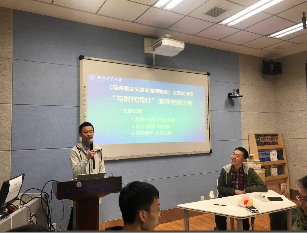 “我演讲的题目是时代新人的历史担当”,“我发言的题目是无我、自我、小我与大我之间的关系”,“我不赞同你的观点,我认为个人奋斗与竞争并不矛盾”……在2019年10月22日上午的“马克思主义基本原理概论”改革试点课上,一场别开生面的演讲比赛与研讨会正如火如荼地进行。如何调动学生在思政课上学习的主体性,让学生成为思政课的主角,让思政课真正走进学生心灵,是这次改革试点的重要环节。
