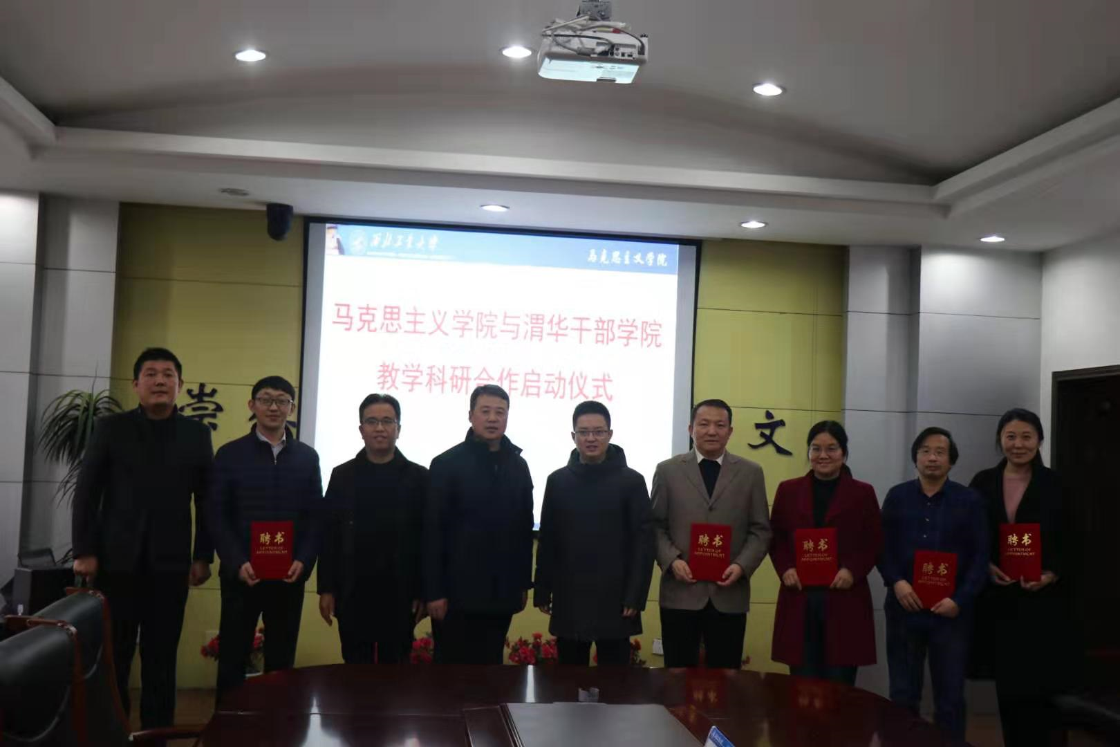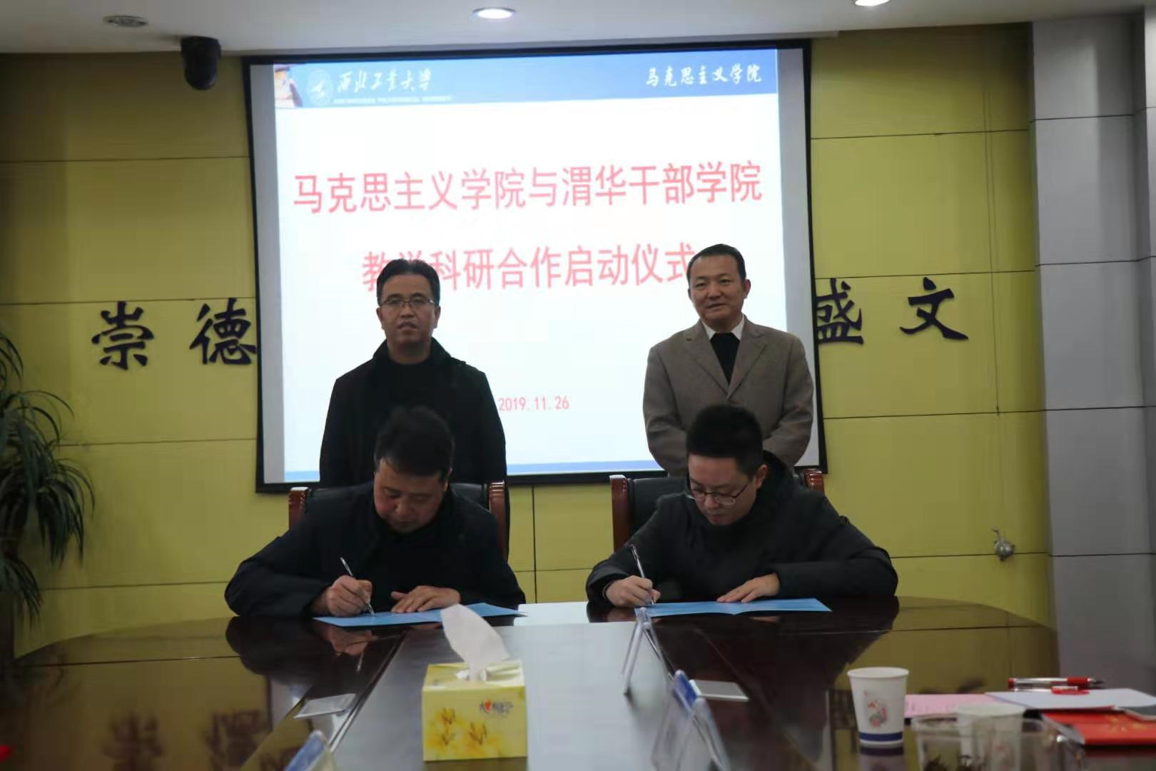 渭华干部学院常务副院长史欣荣在简要介绍了学院历史沿革和近年来主要发展成就后,表示,必赢242net官网师资力量雄厚,教学资源丰富,科研成果众多,希望必赢242net官网马院与渭华干部学院建立合作,拟在五个方面达成合作协议:一是在课程研发方面,西工大马院为渭华干部学院提供人才培养和智力支持,组建相关课题研发组3到4个,对渭华起义革命精神的深刻内涵、历史意义以及时代价值进行在挖掘在发展。二是签约西工大马院相关领域兼职教授3到5名,三是在渭华干部学院设立西工大马克思学院学生社会实习实践基地,一方面可以不断挖掘历史资源另一方面可以提高学生社会实践能力。四是通过各高校德育课程平台和共同打造学术论坛,深化对渭华精神的研究与传播发展。五是双方建立长期沟通交流机制。