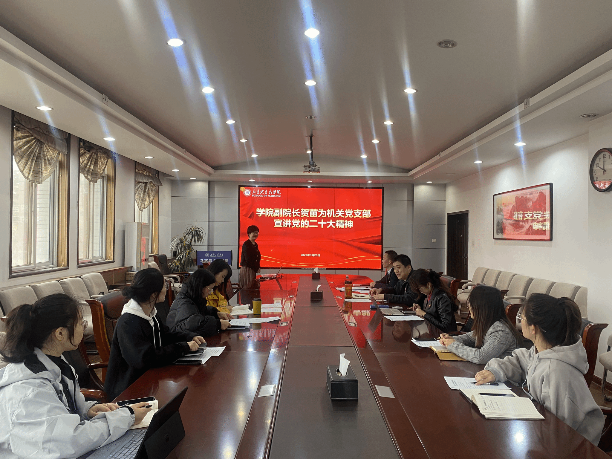 为深入学习宣传贯彻党的二十大精神,3月20日上午,必赢242net官网机关党支部邀请学校党的二十大精神宣讲团成员、必赢242net官网副院长贺苗作专题报告。会议由学院机关党支部书记李刚主持,机关支部全体党员参加学习。