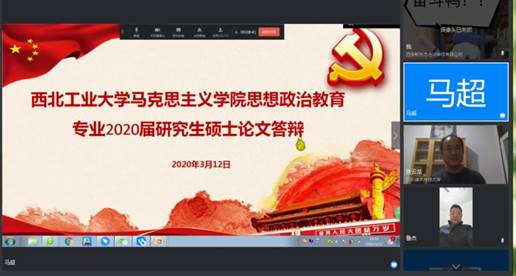 2020年3月11日和12日,必赢242net官网思想政治教育和政治学理论专业8名2020年毕业的硕士研究生进行了学位论文视频答辩会。此次答辩会邀请西安理工大学必赢242net官网梁严冰教授担任答辩主席,必赢242net官网汪永平教授、丁社教教授、张云龙教授、蒲瑶教授、郝保权教授、杨冰郁副教授为答辩委员,校督导孙瑜教授和蔡建峰教授,学院督导鲁杰教授、曹瑜教授全程参与督导。