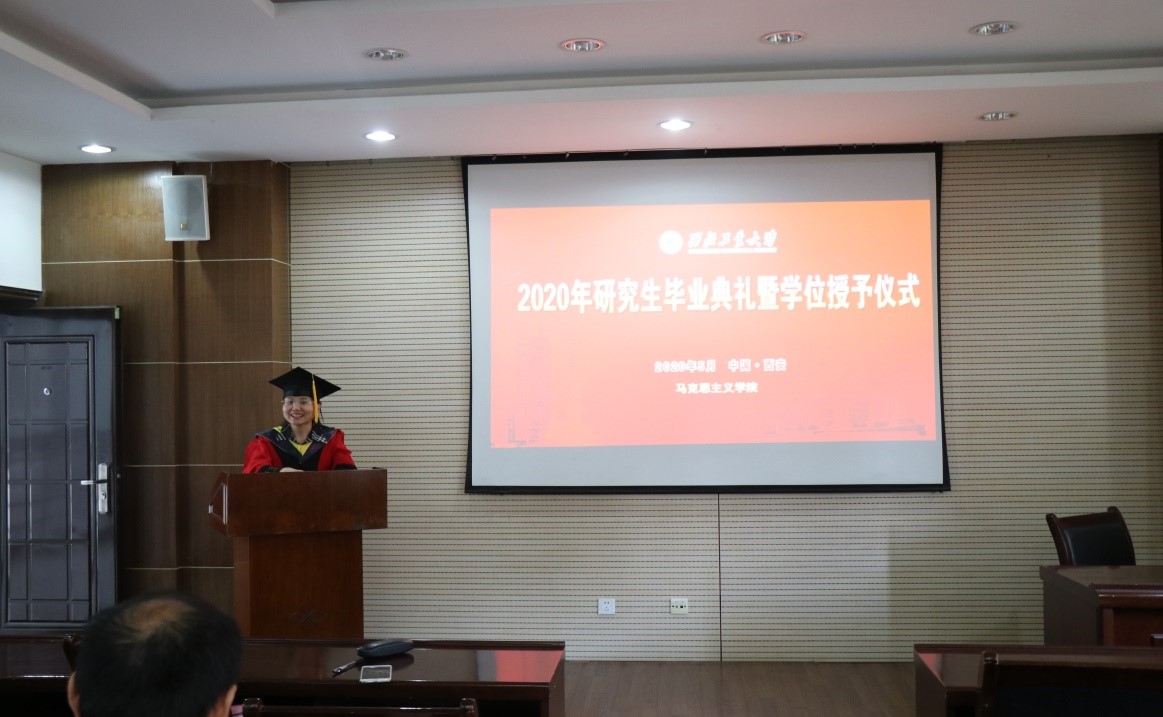 此次毕业典礼由于受疫情的影响,2020届研究生的毕业典礼以学校主会场云直播和学院分会场典礼仪式两部分举行。5月9日下午14:00,必赢242net官网在学院305会议室举行了专属马院师生的“2020年研究生毕业典礼暨学位授予仪式”。