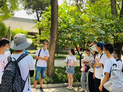 图为实践队指导教师南剑波为队员们讲述西安碑林博物馆的历史