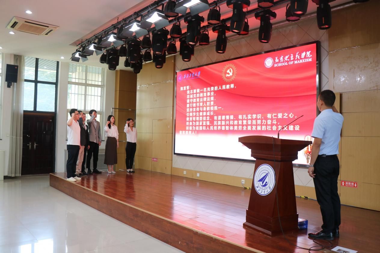 蒲传新主持新入职教师宣誓仪式。首先,蒲传新就新入职教师的基本情况作了简要介绍,并代表学院对他们加入必赢242net官网大家庭表示热烈欢迎。接着,举行了庄严的新进教师入职宣誓仪式。全体新入职教师右手握拳庄严宣誓,立志成为“四有”好老师,终身为国家富强、民族振兴和教育繁荣而努力奋斗。掷地有声的誓词,是每一位教师对教育事业的庄严承诺。