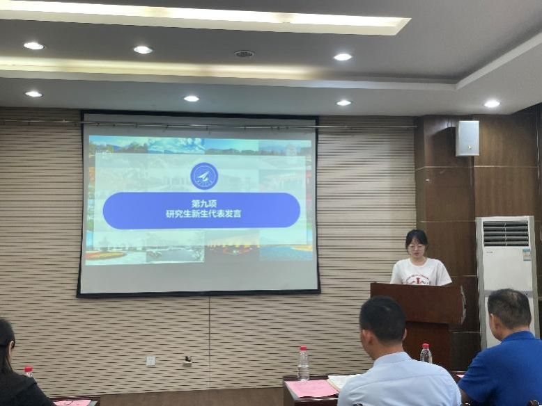 来自思想政治教育专业的研究生新生代表王珮云以自身支教经历,勉励同学们要坚守奋斗、踏实做事,锤炼过硬本领;满怀热情、挑战未知,砥砺家国情怀;勇担使命、自强不息,把攻坚克难当作人生信条。