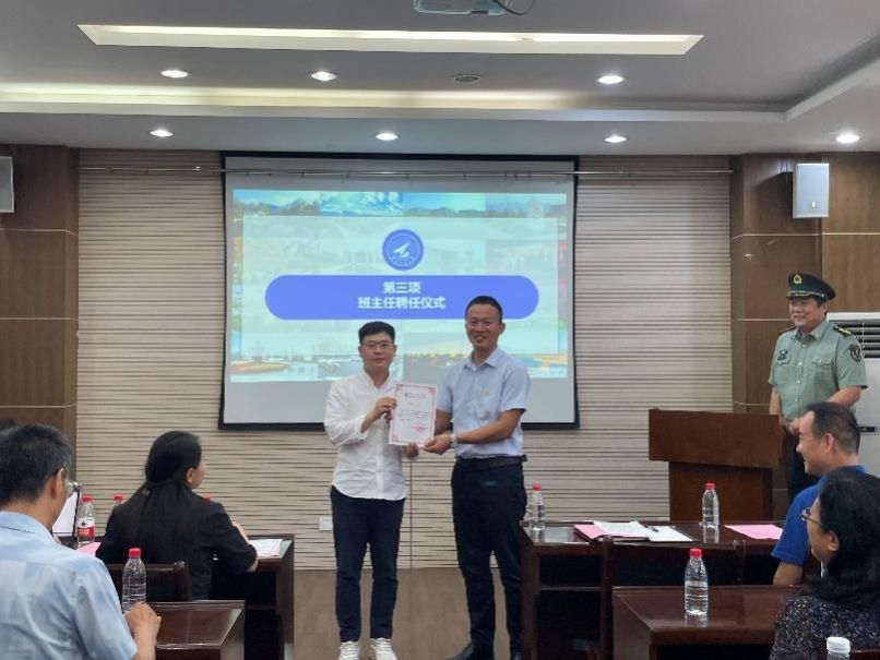 在班主任聘任仪式上,院长书记为新生班主任颁发证书。