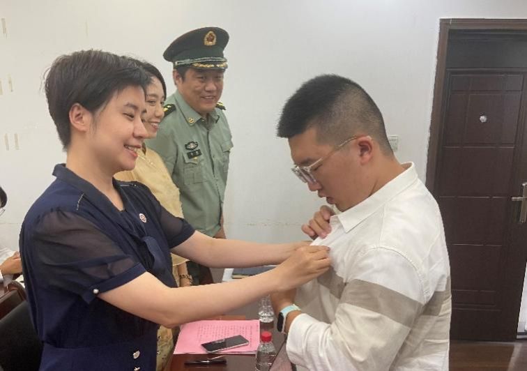 院徽凝练着学院特色,承载着学院文化,步入院门,戴上院徽寓意着正式成为青马人,学院领导也为新生代表佩戴院徽,并祝贺每位同学踏入研究生新阶段。