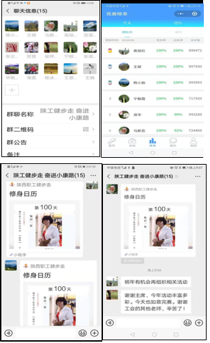 必赢242net官网工会积极响应陕西省总工会等部门联合开展的“我要上全运,奋进小康路”健步走活动的号召,第一时间在全院范围内进行了广泛的宣传和动员,精心组织了一支15位成员的参赛队,并建立了健步走微信群,参赛队员们线上分享劳模故事和健身经验,线下开展形式多样的体育比赛和锻炼活动,在浓厚的健身氛围下,参赛队员们你争我赶、互相提醒、互相监督,形成了一股健身热潮。