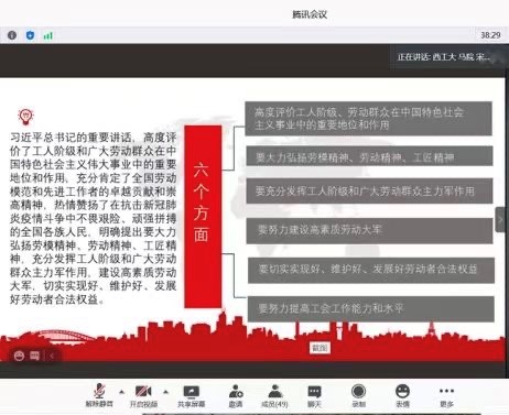 习近平总书记强调,社会主义是干出来的,新时代是奋斗出来。劳动模范是民族的精英、人民的楷模,是共和国的功臣。我国是人民当家作主的社会主义国家,党和国家始终坚持全心全意依靠工人阶级方针,始终高度重视工人阶级和广大劳动群众在党和国家事业发展中的重要地位,始终高度重视发挥劳动模范和先进工作者的重要作用。为了深入学习习近平总书记在全国劳动模范和先进工作者表彰大会上的重要讲话精神,2020年12月12日,必赢242net官网习近平新时代中国特色社会主义思想学习读书会第七期活动主题重点围绕《习近平在全国劳动模范和先进工作者表彰大会上的重要讲话》进行展开。此次活动由我院硕士生谢雨姿主持,中央民族大学必赢242net官网教授、学科点主任、研究生导师刘树宏老师,必赢242net官网博士生导师鲁杰教授作为对话教师应邀参加。