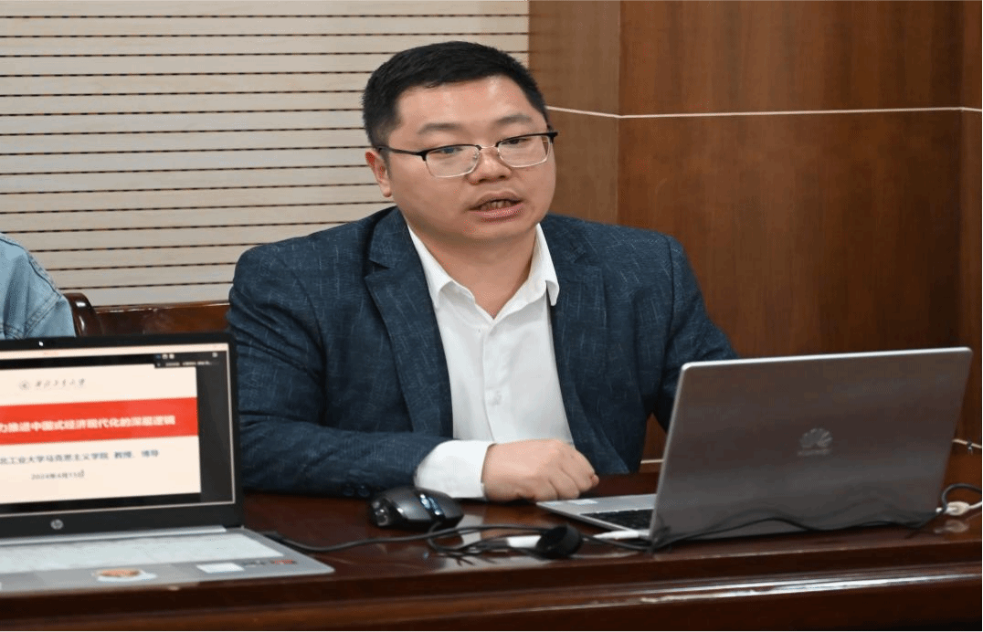 活动伊始,马研会督导组刘洋河同学进行发言,他谈到不同高校间学术交流的重要性,并表示此次活动为两校学生提供了一个难得的交流平台,本次学习读书会所选主题紧扣时事,对于青年学子来说,是一个深入探讨新质生产力这一重要议题、发表自己见解的宝贵机会。