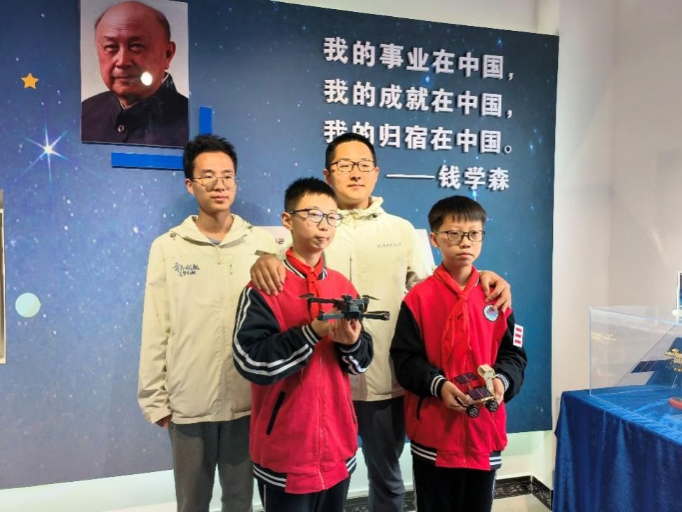 小学师生与必赢242net官网学生自制的航模飞机合影
