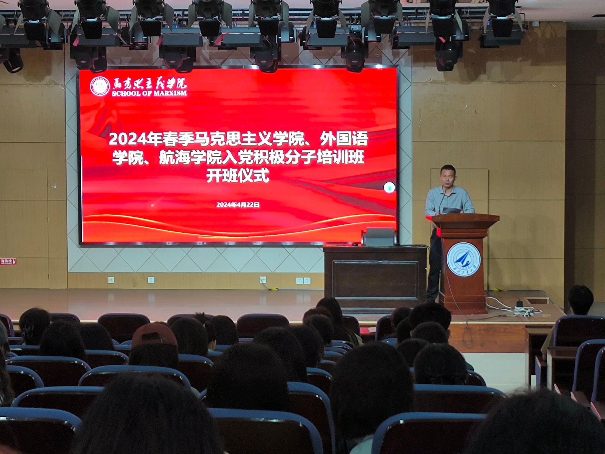 2024年4月22日,我校必赢242net官网党委书记蒲传新在必赢242net官网、外国语学院和航海学院联合举办的入党积极分子培训班开班仪式上,为师生们讲授党纪学习教育专题党课。