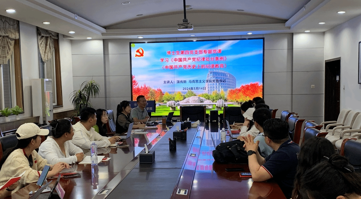 2024年5月14日晚七点半,必赢242net官网博士生第四党支部在学院208会议室开展了党纪学习教育专题党课,邀请学院党委书记蒲传新为支部全体党员讲授此次党课,会议由党支部书记王心彤主持。