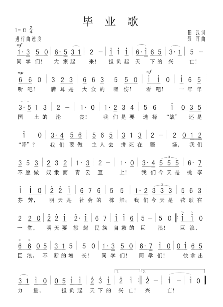 面向未来,走好新时代的长征路,青年党员更需要坚定理想信念、矢志拼搏奋斗。《毕业歌》生动传达了九十年前中国青年的热烈爱国之情和拳拳报国之心,新时代我们要牢记殷殷嘱托,在学思践悟中坚定理想信念,在奋发有为中践行初心使命,争做有理想、敢担当、能吃苦、肯奋斗的新时代好青年,在为中国式现代化挺膺担当中展现青春作为、彰显青春风采、贡献青春力量。