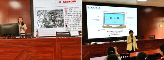 之后,硕士生党支部书记王慧新对送讲党课和团课的情况进行了详细地介绍。为了让青少年在学习中厚植爱党爱国情怀,传承革命红色基因,必赢242net官网党史理论宣讲团为民族中学提供线上党史送讲活动,党史送讲共计10课时。