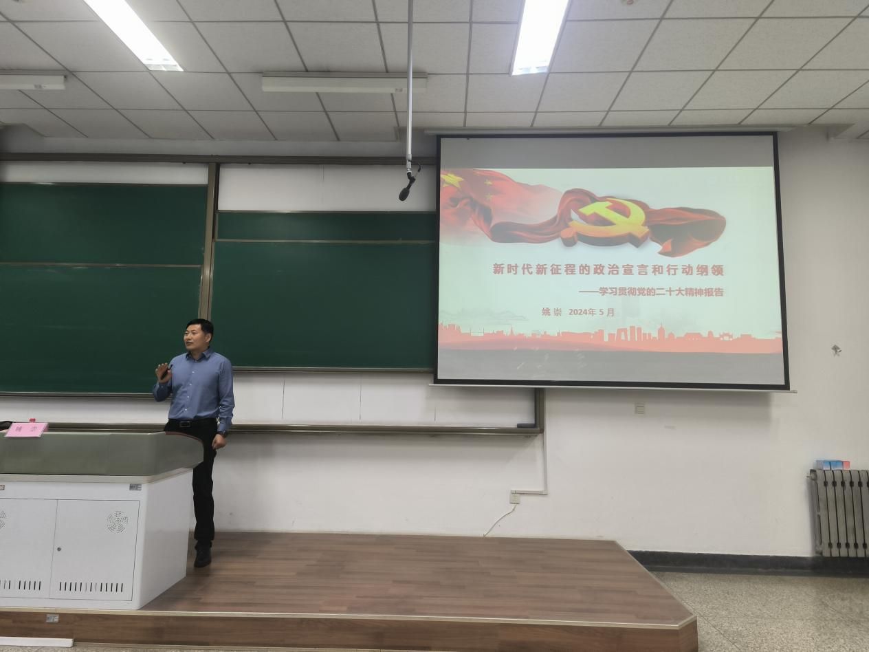 5月6日,姚崇教授作《新时代新征程的政治宣言和行动纲领——学习贯彻党的二十大精神》主题讲座,姚崇教授从党的二十大报告的核心内容出发,系统阐述了新时代的历史方位、主要矛盾和发展目标,围绕一个中心任务、“三个务必”“五个必由之路”等为我们讲述中国近十年的发展历程。本次讲座内容丰富、深入浅出,使同学们更加深入地理解了党的二十大精神的核心要义和实践要求,将进一步把学习成果转化为推动学习工作的强大动力和实际成效。