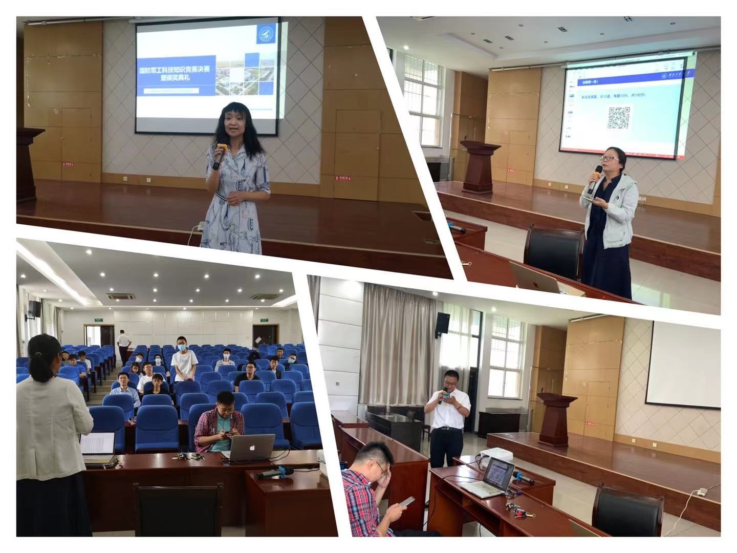 竞赛分线上线下两个阶段展开。5月29日~6月1日为线上预赛阶段,6月19日为现场决赛。线上初赛借助问卷星考试平台发布,主要考察学生对国防理论、国防知识、国防历史、国防法规的了解程度;线下决赛分两场举行,主要考察学生对新中国成立以来我国在国防军工领域取得的重要成绩、建党以来中国共产党带领中国人民走向民族解放和国家富强过程中的国防军工军事历程的了解。竞赛还特别设置了问题,考查学生对我校在国防军工领域作出重大贡献的掌握情况。