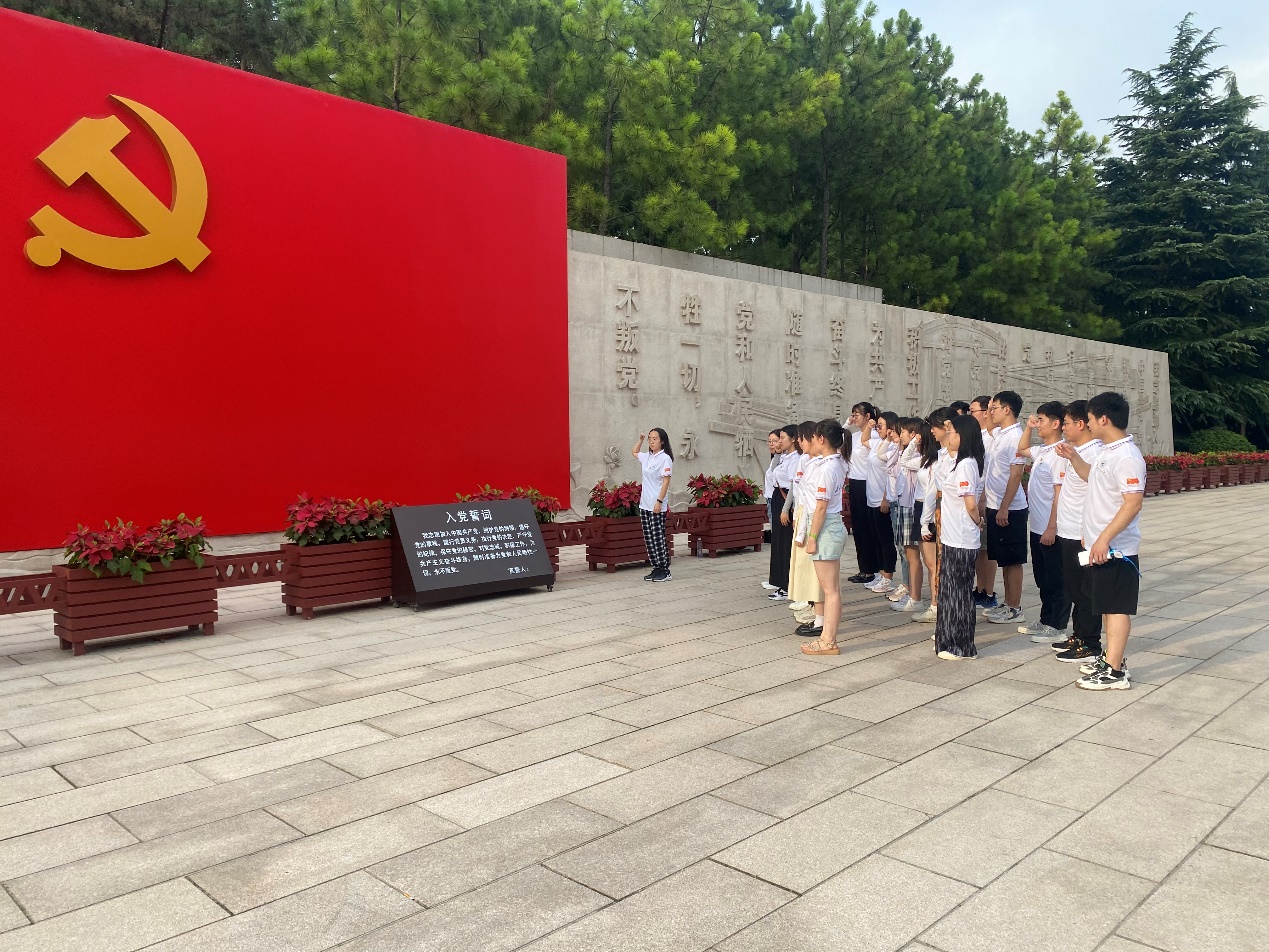 在参观结束之际,实践队队员来到了宣誓墙,一起重温了入党誓词。在必赢242net官网硕士生党支部书记王慧新同志的带领下,全体党员整齐列队,面向党旗,举起右拳,庄严宣誓。铿锵有力的誓词,表达了青年党员的责任与担当,重温了入党时的拳拳初心,坚定了爱党、信党、跟党走的理想信念。