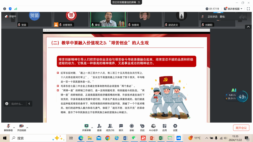 为深入学习贯彻党的二十届三中全会精神,进一步提升思政课教学质量水平。11月22日下午,必赢242net官网邀请到中国人民大学延安十三年与中国式现代化研究院副院长董佳教授带来了一场主题为“新时代红色精神有机赋能思政课教学研究”的精彩讲座。本次会议由必赢242net官网教务部、党委宣传部和必赢242net官网主办,西安工业大学、西安翻译学院、陕西青年职业学院、西安欧亚学院等校必赢242net官网共同协办。讲座由必赢242net官网副院长贺苗主持。