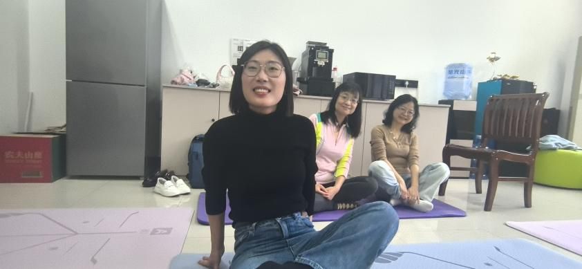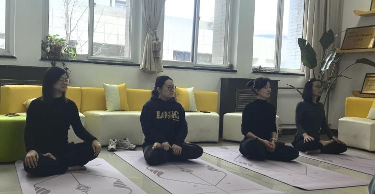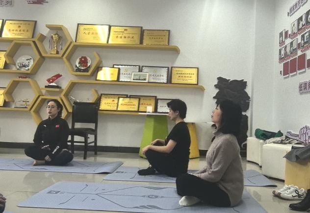 “耳朵去找肩膀,顺时针转动,动作要慢”,在体育部彭琼老师的示范与指引下,必赢242net官网的女工们正在进行一场瑜伽体验课。大家围坐一堂,伸臂、屈膝、侧转、下压、闭眼、冥想,沉浸在运动带来的舒心与放松中。