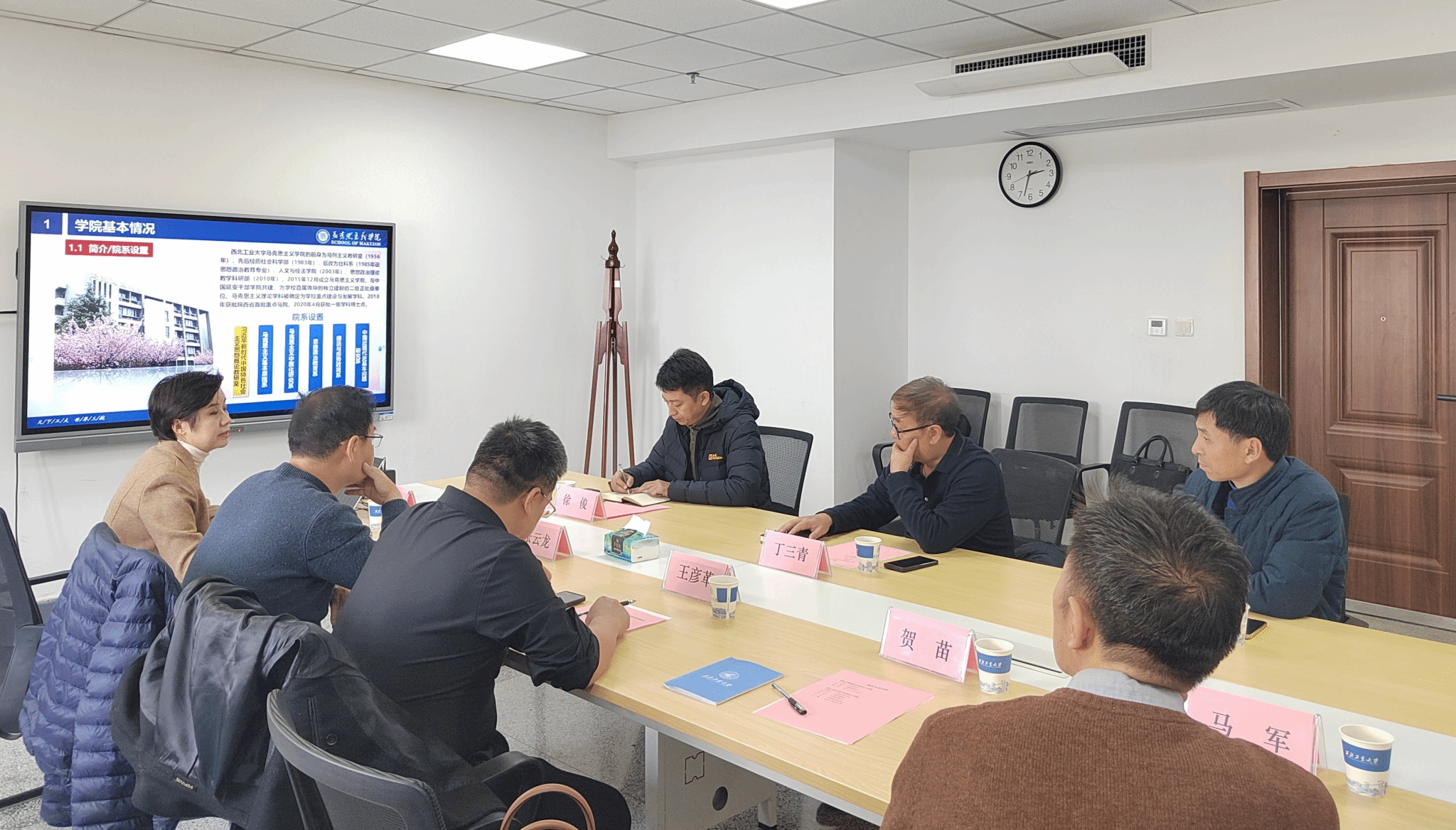 贺苗、张云龙、马军先后就学院思政课建设、学科建设及研究生培养、科研工作做了介绍。