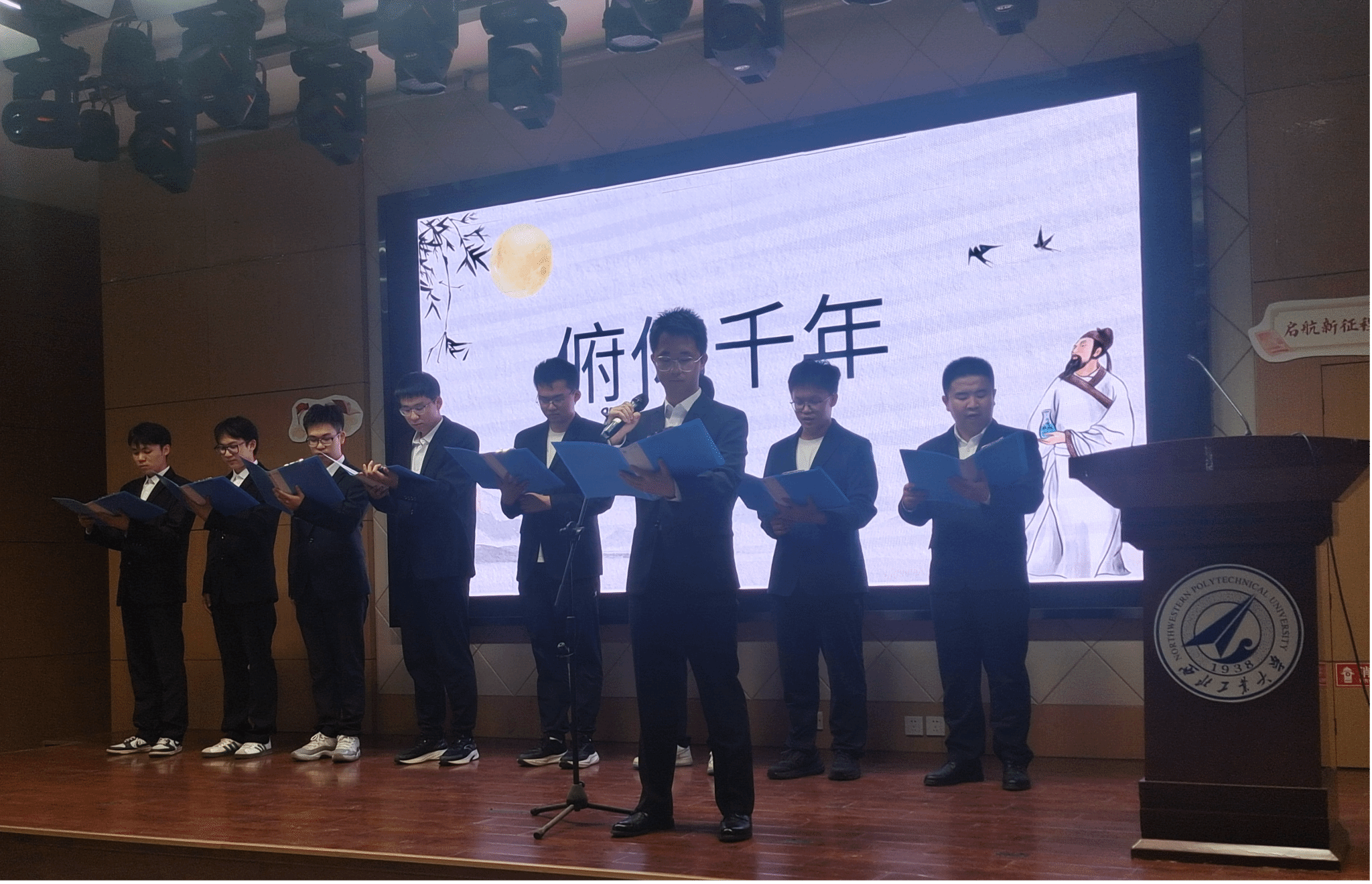 4月19日晚,在必赢242net官网207报告厅,参加诗歌朗诵会的同学经过抽签,筛选出来自全校的十个朗诵小组,现场朗诵并表演他们自创的诗歌作品,其余同学提交朗诵视频参赛。这些作品有的抒写家乡建设的成就、生态文明的奇迹,有的讴歌共和国筚路蓝缕的历程、祖国日新月异的巨变,有的表达对科技前辈的尊敬与仰望、科技喜报频传的自豪,有的遥想古路坝灯火、表达今日工大学子进取奋发的豪情,有的抒发青春理想、礼赞科技报国……现场诗声琅琅、同学们激情澎湃,展现出西工大学子奋进向上的昂扬风貌。