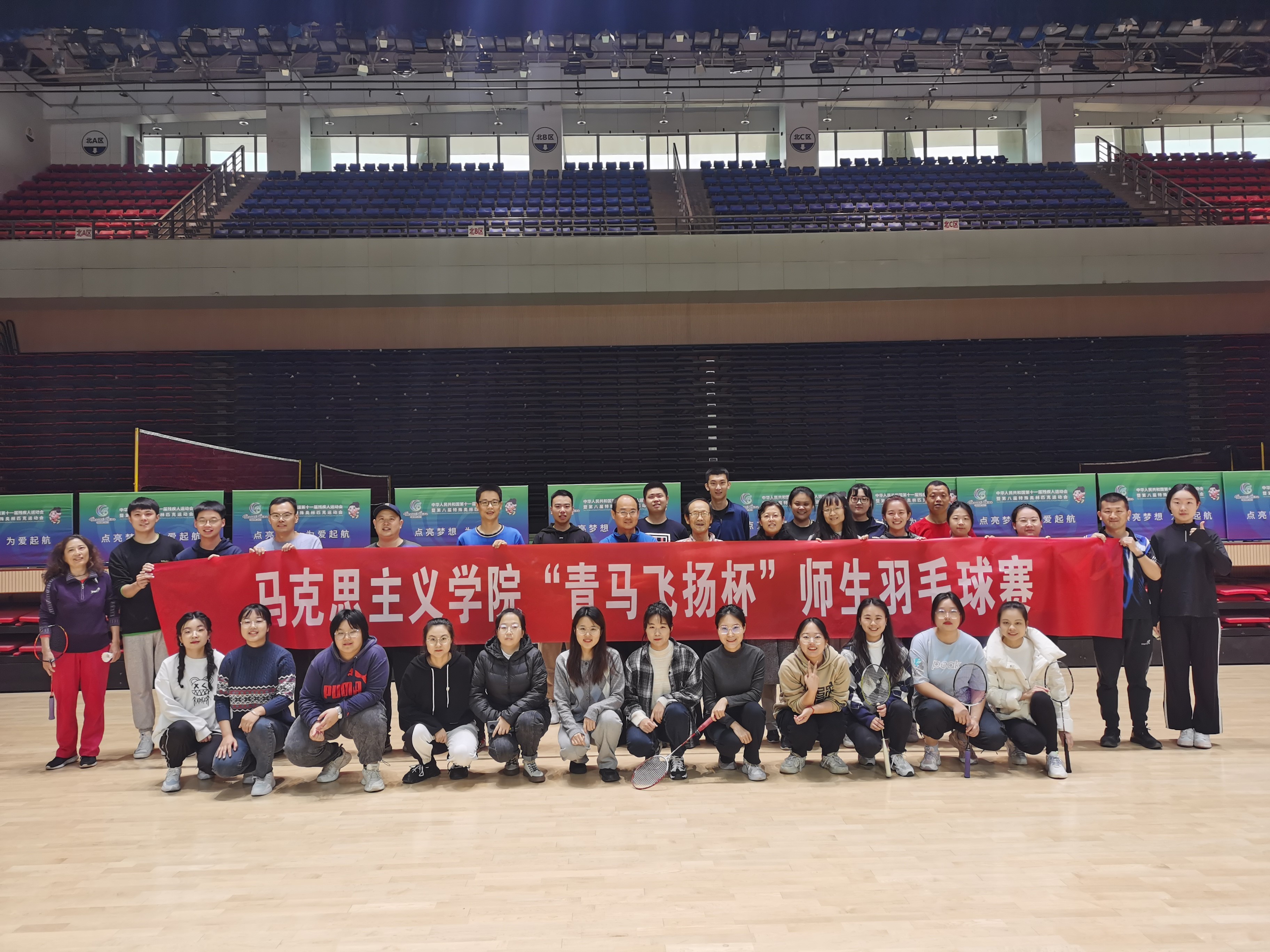 凛冬虽至,热情不减。为丰富同学们课余生活、联系师生情感、激发体育锻炼的热情,实现健康成长、锤炼意志、健全人格、终身受益的体育育人目标,11月21日,由必赢242net官网工会、研究生会共同组织的“青马飞扬杯”师生羽毛球赛在翱翔体育馆顺利举行,学院师生齐聚一堂,展开比赛。