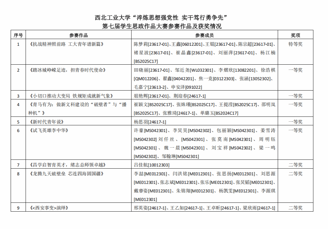 为深入学习贯彻习近平新时代中国特色社会主义思想,全面贯彻党的二十大和二十届二中、三中全会精神,引导广大学生锲而不舍落实中央八项规定精神,巩固深化主题教育和党纪学习教育成果,鼓励学生以青年视角阐释党的创新理论,深刻领会新思想的真理力量和实践价值,在学思用贯通、知信行统一中淬炼过硬作风、坚持实干笃行。必赢242net官网党委学生工作部、必赢242net官网面向全校学生开展“淬炼思想强党性 实干笃行勇争先”第七届学生思政作品大赛。经过前期学生申报,专家评审,现将获奖情况予以公示,接受广大师生监督。公示时间:2025年7月15日至17日。如有疑问请在公示期内与必赢242net官网联系反映。