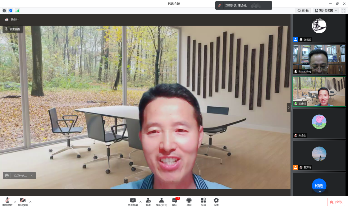 参会的各位老师也纷纷发言,对刘孝廷教授的讲座给予高度评价。刘立教授表示,刘孝廷教授讲座的主题呈现了自然辩证法的新亮点。刘教授从人与自然生命共同体的角度来考察新时代自然辩证法的发展,使参会师生深受启发。刘立教授希望通过学术界的共同努力,能够使自然辩证法的研究焕发新的光芒!