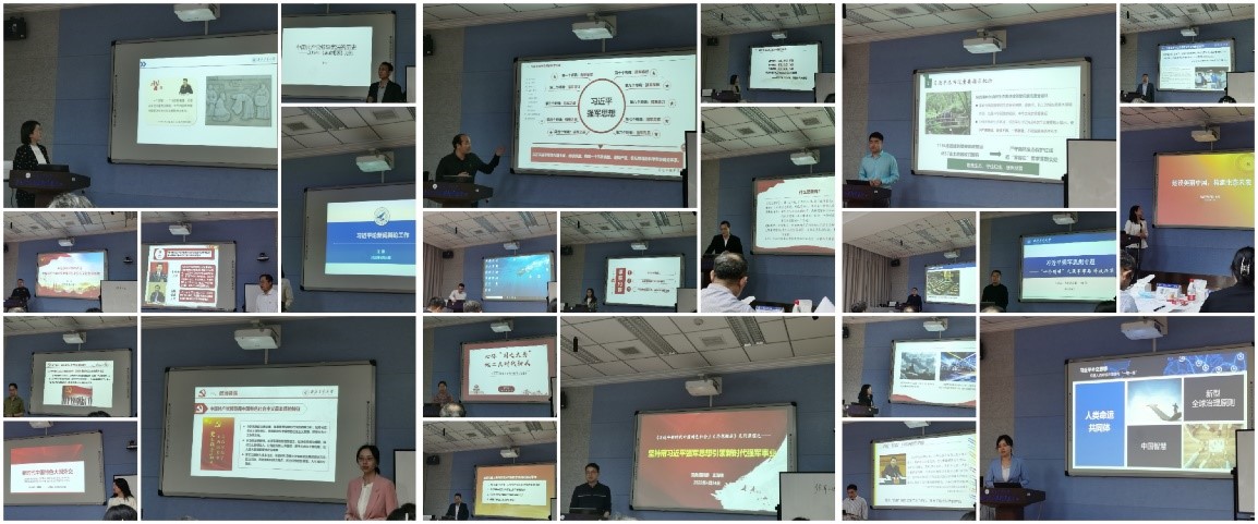 其中,有来自国际教育学院的老师讲授习近平外交思想、有亲身从军经历的老师讲授习近平强军思想、来自生态与环境学院的老师讲授习近平生态文明思想、来自工科学院的教师讲授习近平关于科技的重要论述、教师发展中心及学生工作处的老师则讲授习近平关于教育的重要论述等。参加试讲教师的专业背景和岗位经验让他们的教学设计更加丰富新颖、教学内容生动活泼,理论与实际相结合的试讲让现场仿佛置身于教室中师生面对面授课一般充满了生动性和感染力。经过将近4小时的试讲、专家评审、会务计分、会后研讨,最终圆满完成了此次思政课兼职教师的选拔。