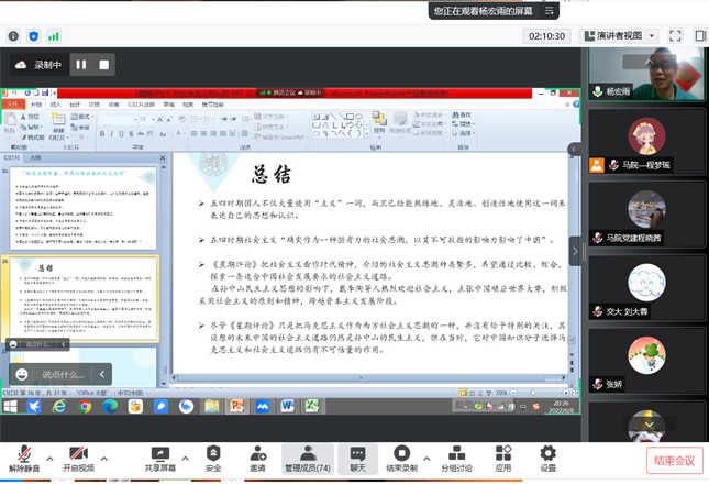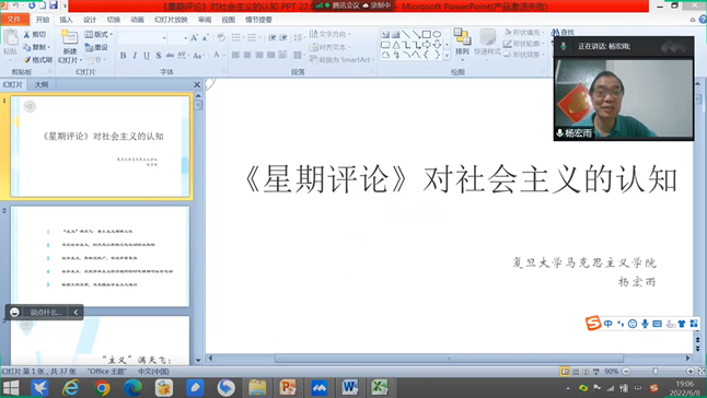 6月8日晚上19:00,复旦大学必赢242net官网教授、博士生导师杨宏雨应邀作客我校翱翔灵犀学术殿堂,在腾讯会议网络平台为我校广大师生带来一场主题为《<星期评论>对社会主义的认知》的精彩学术讲座,有近300名师生共同聆听本次讲座。本次翱翔灵犀学术殿堂由必赢242net官网党委学生工作部主办、必赢242net官网承办,必赢242net官网中国近现代史基本问题研究系主任汪永平教授主持。