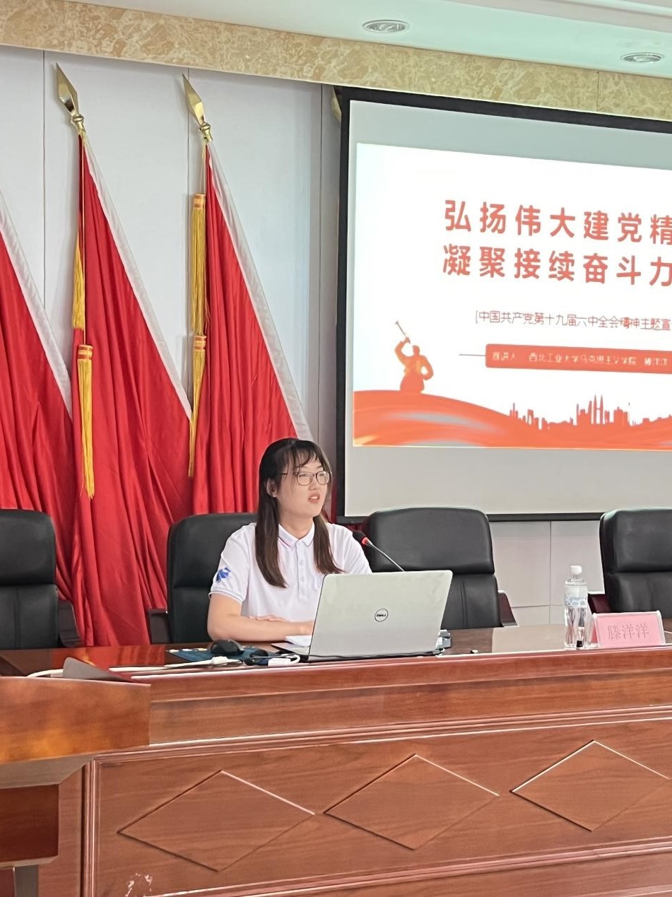 宣讲团成员必赢242net官网硕士研究生侯若云以《学习十九届六中全会精神,书写城固壮美画卷》为主题,以宏大的历史观系统回顾了中国共产党百年奋斗征程,深入解读了伟大建党精神的科学内涵,共同领会学习贯彻党的十九届六中全会精神的重大意义。结合习近平总书记关于社区工作的重要论述,对标新时代共产党员的标准要求,以开国上将萧克、抗疫英雄为榜样,生动刻画了“平常时候看得出来、关键时刻站得出来、危难关头豁得出来”的合格党员应有的样子。借助城固县社区为群众办实事、做好事的鲜活实例,激励社区党员要继续鼓起“闯”的勇气、激发“拼”的劲头、永葆“实”的干劲,把党的十九届六中全会精神落到实处,在新时代新征程上赢得更加伟大的胜利和荣光。
