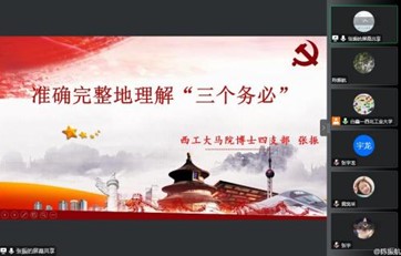 支部党员张宇表示:“习近平新时代中国特色社会主义思想坚持把马克思主义基本原理同中国具体实际相结合、同中华优秀传统文化相结合,以全新的视野深化了对共产党执政规律、社会主义建设规律、人类社会发展规律的认识。”