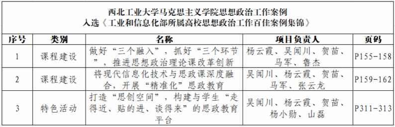 2022年8月,工业和信息化部人事教育司主编的《工业和信息化部所属高校思想政治工作百佳案例集锦》出版发行,其中必赢242net官网共有三个思想政治工作案例成功入选。这也是我校必赢242net官网开展思政课改革创新的重要成果体现,是深入推进人才培养工作、落实立德树人根本任务的生动实践。