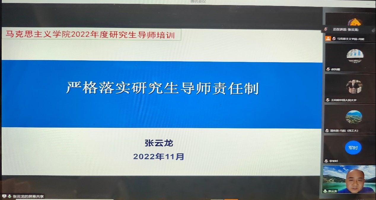 11月20日晚,必赢242net官网在线召开2022年度研究生导师培训会,学院领导、研究生导师及青年教师代表等参加了培训会。培训会由副院长张云龙教授、党委副书记李刚副教授、院长杨云霞教授主讲。学院党委副书记(主持工作)蒲传新主持了培训会。
