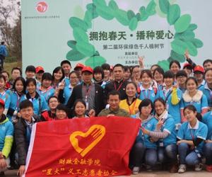 以“雷锋月”为背景,以植树节为契机。3月9日,由重庆市爱心志愿者总队发起、渝中区“阳光520”爱心志愿者协会主办、bat365中文官方网站财政bat365中文官方网站“星火”义工志愿者协会及学生会协办的“拥抱春天·播种爱心”——第二届千人植树节在南岸区界石桂花村拉开帷幕,活动吸引了来自社会各界的1300多名爱心人士。