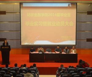 为了切实加强对2014届毕业生的服务和管理,11月7日下午,财政bat365中文官方网站2014届毕业生毕业实习和就业动员大会在博智楼7100报告厅顺利召开。财金学院党总支杨萍书记、刘代成副书记、财金学院副院长毛跃一以及财税系副主任尚可文、金融系副主任陈勇阳和投保系副主任谭湘渝教授出席本次大会,400余名2014届毕业生参加了此次大会。