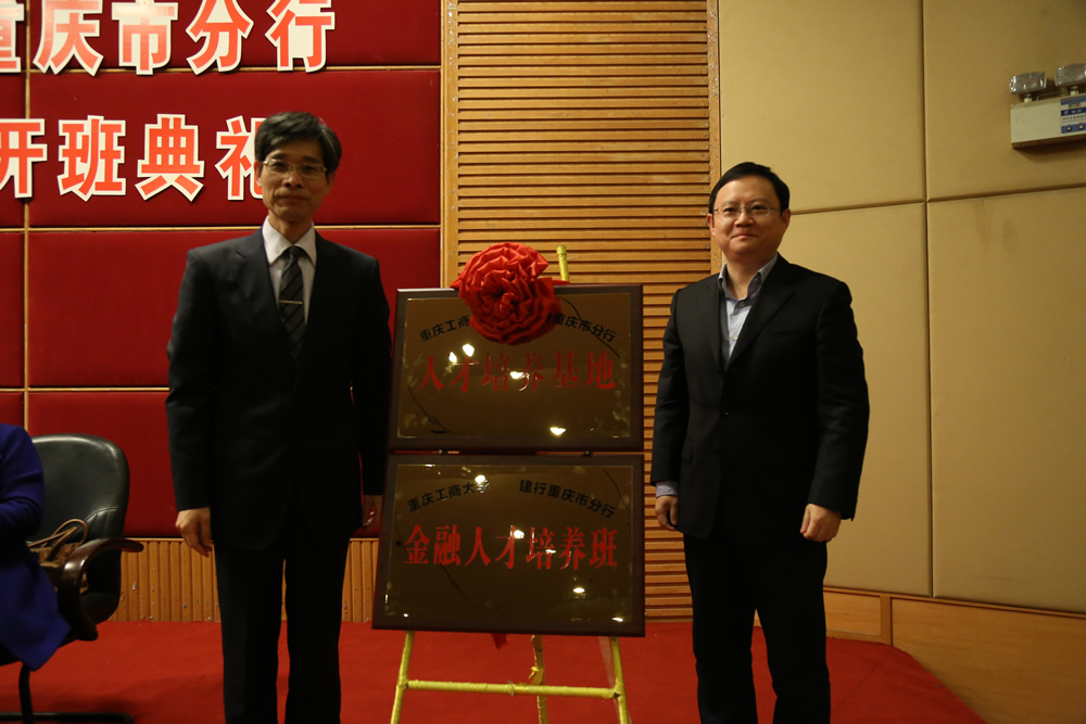 首先建行重庆分行人力资源部王栎总经理介绍了“金融人才培养班”的组建情况。张梦婷代表全体学员对建行重庆分行所给予的机会和母校的悉心栽培表示衷心的感谢,并表示要珍惜学习机会,学有所成、学有所长。建行重庆分行张希副行长和bat365中文官方网站孙芳城校长共同为“中国建设银行重庆市分行金融人才培养班”和“中国建设银行重庆市分行人才培养基地”揭牌。建行重庆分行文姜元副行长对我校在过去十余年中对建行的大力支持、在共建“金融人才培养班”中付出的努力的各部门表示感谢。他表示,金融人才培养班”的共建是对人才培养模式的全新探索和深入合作,希望学员充分利用平台优势,珍惜机会,完善自我,为成长加油!