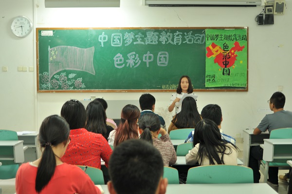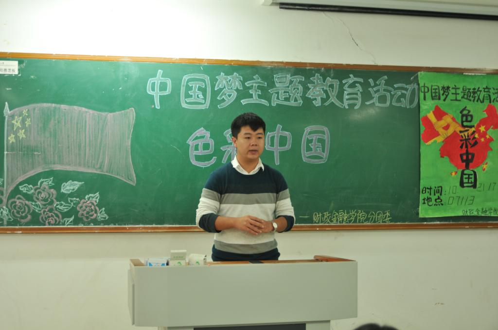 ,由财政bat365中文官方网站分团委学生会主办的“中国梦”主题教育系列活动之色彩中国在博智楼113教室召开。分团委书记兰丽娟老师、学生会干部及学院各班团出席了本次活动。