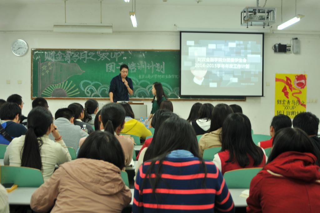 下午,财金青马月系列活动之“双UP”团干培训计划启动仪式于博智楼105教室举行。财金学院党总支刘代成副书记,学团办主任杨佳妮老师,分团委书记兰丽娟老师亲临现场,与学生会全体干部、13级班团进行面对面的交流,分享经验并强调工作中的注意事项。