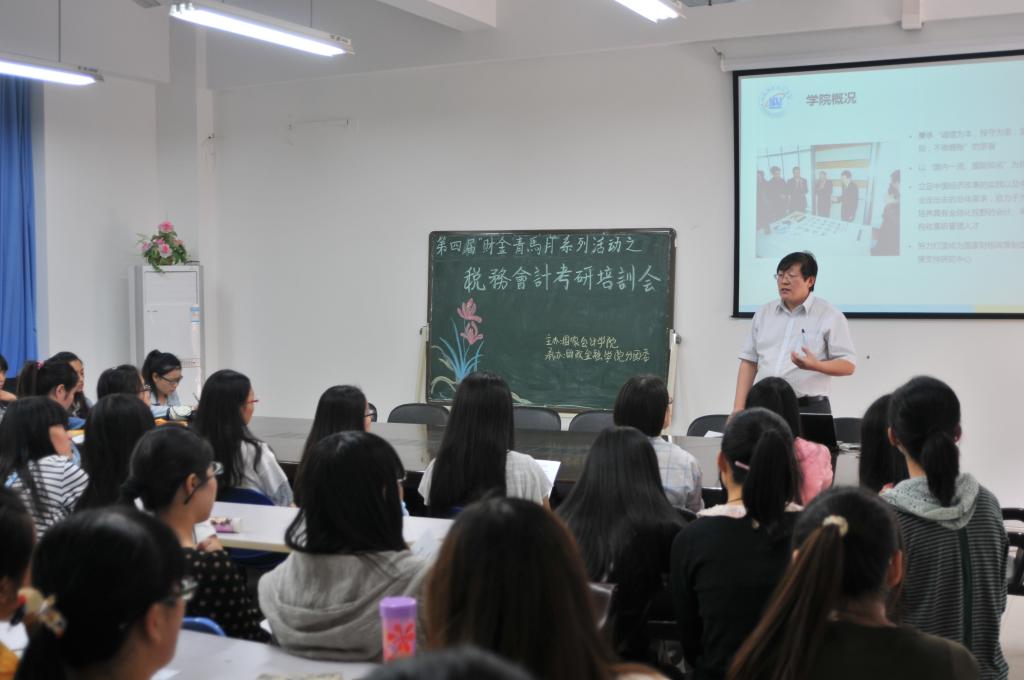 会上,朱克实教授从考研目标制定、专业选择、前期准备、心理备战等方面介绍了财税专业学生考研的各个注意事项,并结合北京会计学院的具体招生情况,就考研科目、分数线划定及研究生培养计划、奖学金政策等相关问题作出详细说明。他指出,读书不仅利于增长知识才干,也有利于人际关系网络的建立,希望同学们能在辛苦的考研路上再接再厉。宣讲完毕,同学们热情高涨,纷纷提问咨询,朱教授也一一耐心解答,并给出中肯建议。