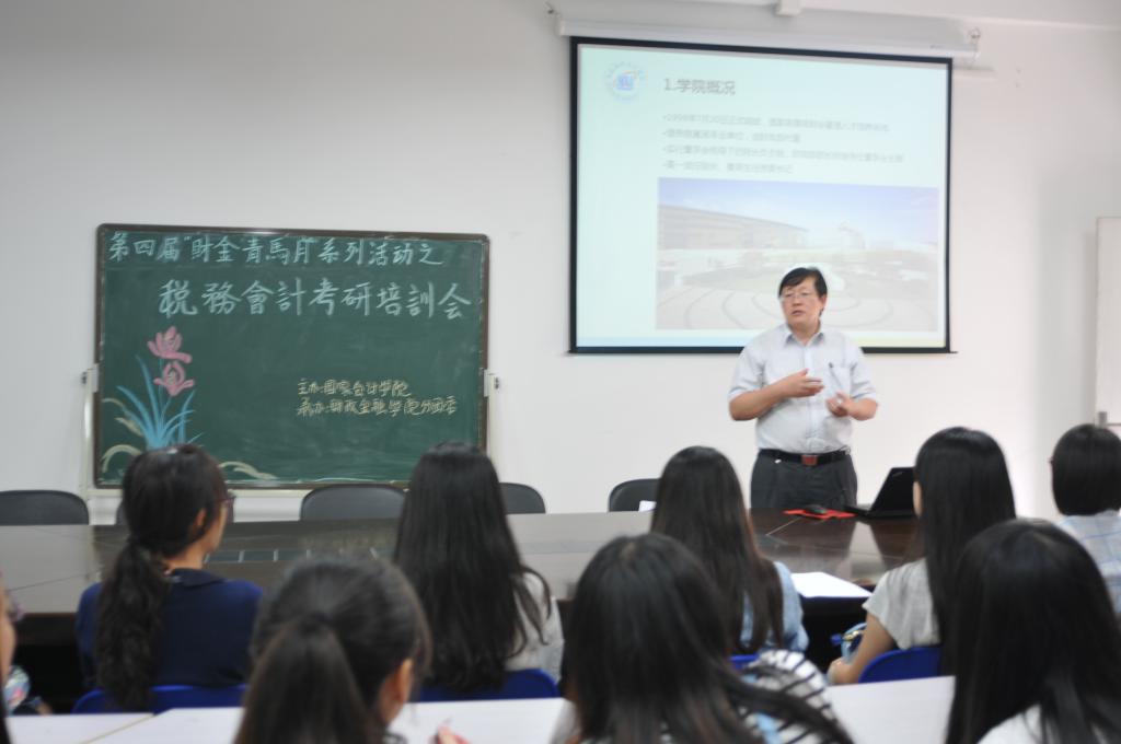 中午,由北京国家会计学院主办、财政bat365中文官方网站分团委承办的第四届“财金青马月”系列活动之财税会计考研培训会在田家炳313会议室举行。北京国家会计学院朱克实教授担任主讲嘉宾莅临现场,财政bat365中文官方网站常务副院长莫云、分团委书记兰丽娟老师及bat365财政学、税务学专业的部分学生参加了本次培训会。