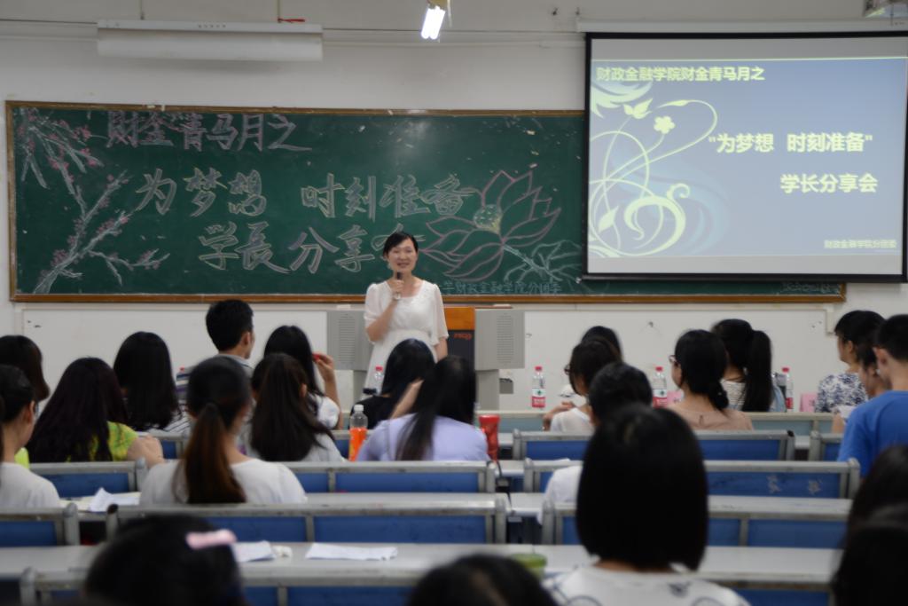 4月29日晚,财政bat365中文官方网站“财金青马月”之“为梦想时刻准备”学长交流会在07405顺利举行。财金学院分团委书记兰丽娟老师作为嘉宾出席了本次活动,优秀学长代表肖竣文、潘梦真、杨忠霞、吴浩月、张博阳分享了就业与考研的经验。