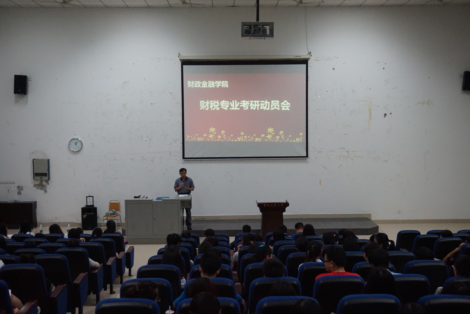 6月19日晚,财税专业考研动员会在田家炳209学术报告厅隆重举行。财政bat365中文官方网站财税系主任尚可文教授、副主任朱沙老师、贾鸿副教授及学院学生第二党支部书记白玉老师和分团委书记兰丽娟老师作为嘉宾出席了本次动员大会。优秀学姐代表张晓玲、刘春兰、金卓文、陈红、李爽分享了考研的经验,财税系2012、2013级待考研学生参加了本次大会。