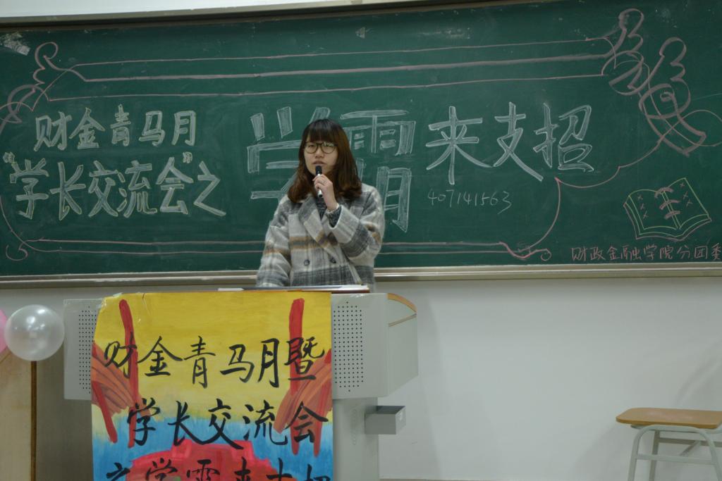 本次活动分为三个环节,风采展示、交流经验、答疑互动。在风采展示中,王萧学姐首先讨论要平衡大学学习生活,给了大家一些学习生活中的帮助;关于竞赛,刘卓成学长以自己的切身经验对各位大一同学讲解了有关金融竞赛方面的点滴;学习上,蔺夫泽学长指出要对学习作出规划,有计划地学习;在国际交流方面,何家欢学姐从自身出发,为大家详细讲述了出国交流必要的前期准备。在答疑互动阶段,现场氛围更是活跃,学姐学长们更是对同学们的疑惑作出了较为详细地回答。