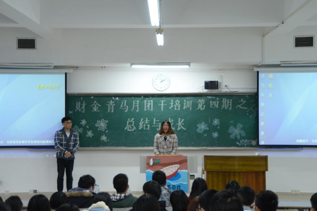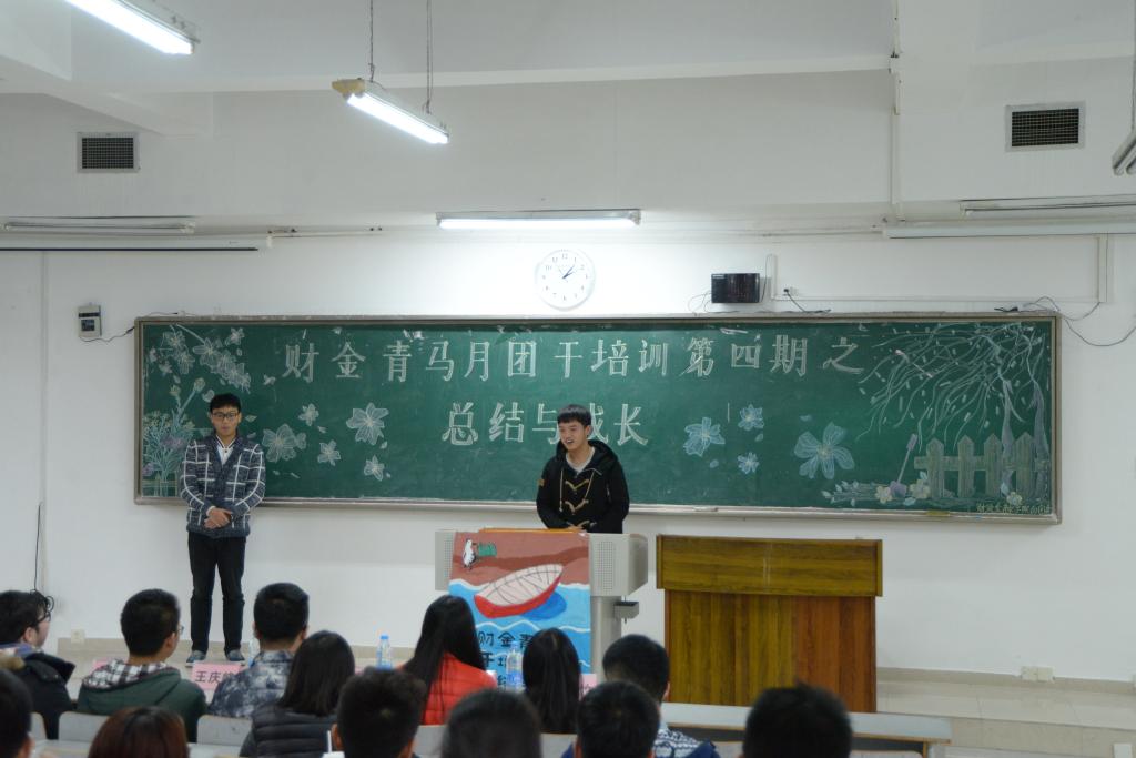 主题为“总结与成长”的第四期“财金青马月”团干培训于12月18日顺利举行。出席这次培训的嘉宾有财政bat365中文官方网站分团委副书记王博、学生会主席邓美玲、副主席李超、副主席黄茂竹、副主席王庆峰,他们与财金学院各班团、学生会各部长一同回顾了本学期精彩纷呈的团干培训活动。