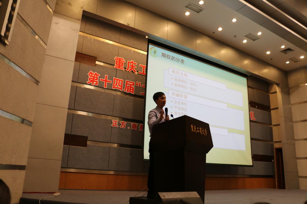 大赛秉持着培育金融行业后备人才,促进高校将知识竞赛与学科建设挂钩,普及金融衍生品知识的目标,为全国大学生提供了金融及衍生品知识交流学习的良好平台。宣讲会伊始,刘书记在致辞中表达了对相关专业公司的感谢以及对参赛选手们的殷切希望。随后,对于参赛细则问题,华泰期货代表陆彦为同学们详细解说了知识竞赛的参赛要求及方式。随后,财金学院余红霞博士对整个大赛的流程与时间做了更进一步的将对。最后,周明先生通过生动有趣的互动,系统阐释了期货知识,帮助同学们夯实基础;“阳春白雪,下里巴人”,沈发鹏先生以诙谐幽默的语言向同学们介绍了期权知识及股指期权应用。现场提问环节中,与会同学踊跃提问,大家将有关金融及衍生品知识的问题与专业人士探讨,宝贵的机会让同学们收益良多。
